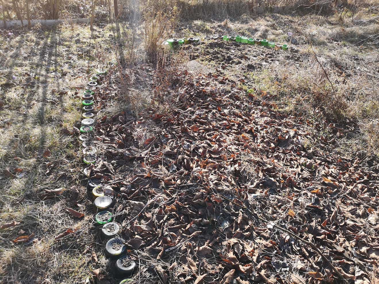 Das Foto zeigt auch einen Teil der Beetumrandung, wir nennen das ganze Beet das „Flaschenbeet“: